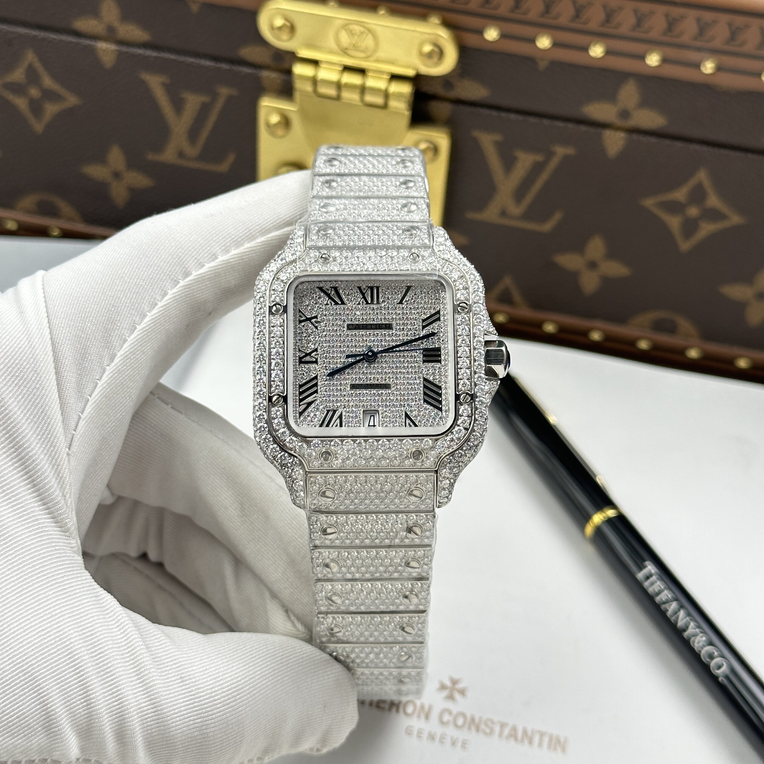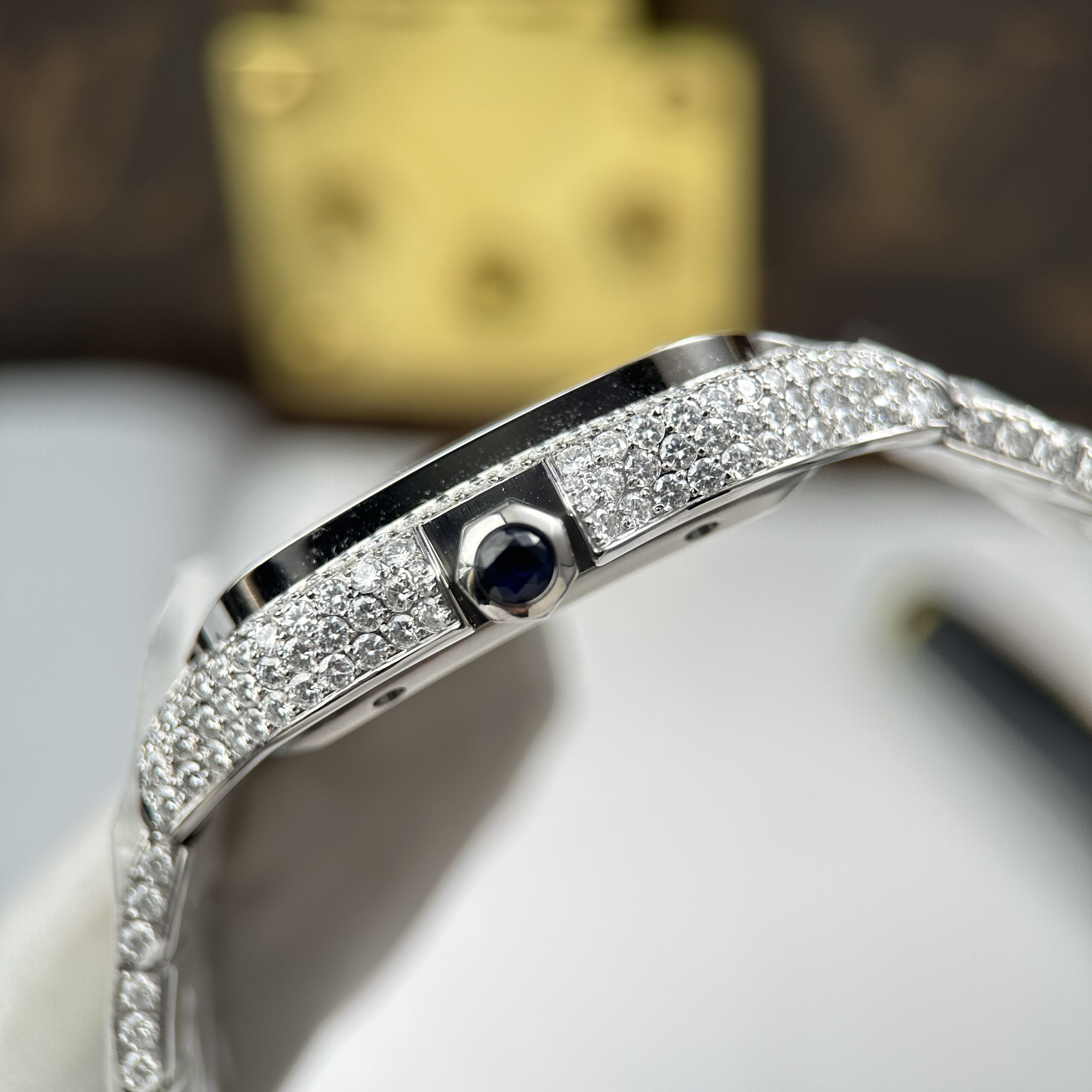 Đồng hồ Cartier Santos Replica 11 nhà máy đính full kim cương moissanite 39.8mm