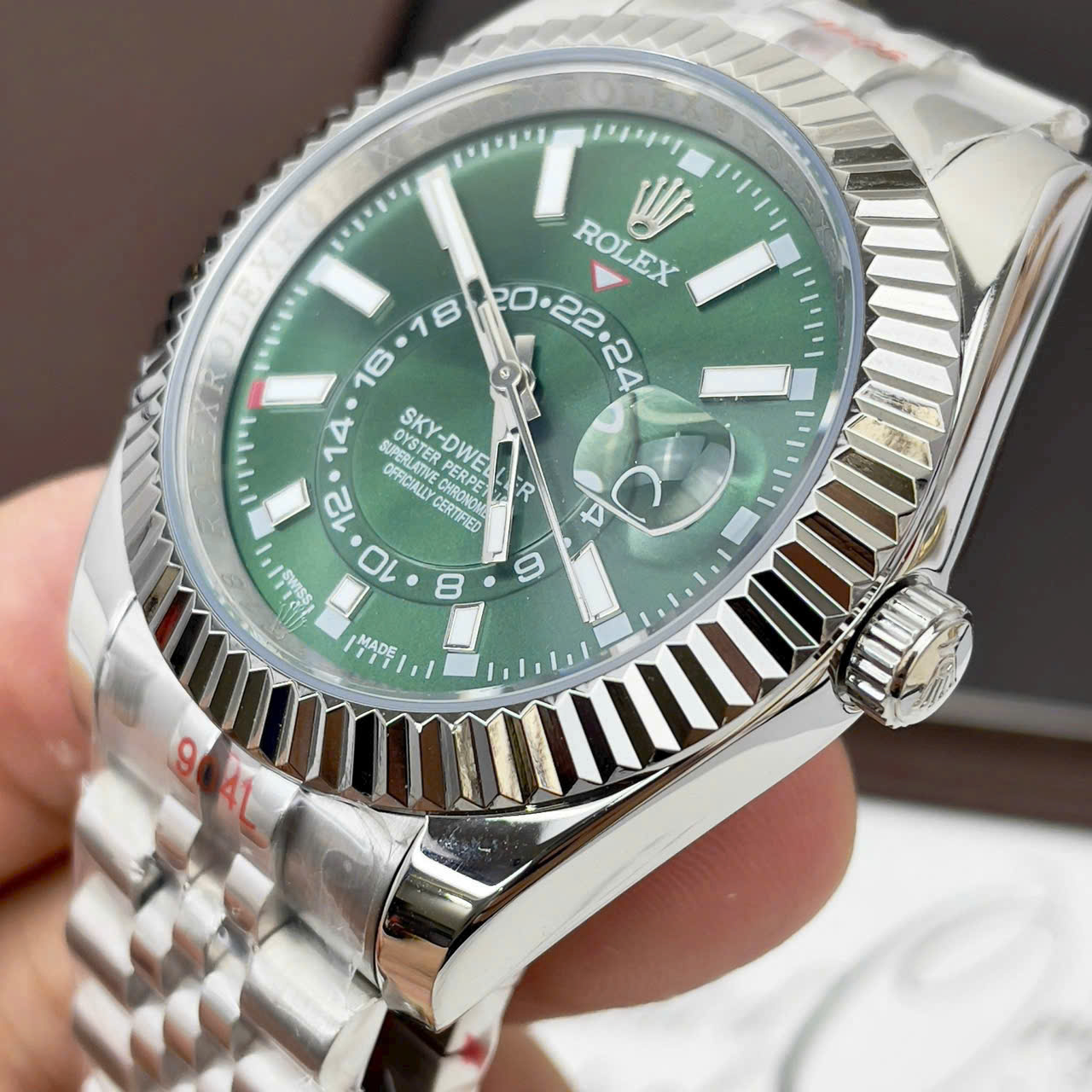 Đồng hồ Rolex Sky-Dweller nam dây kim loại mặt xanh lá fake cao cấp 40mm
