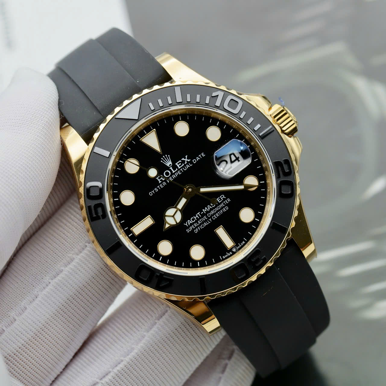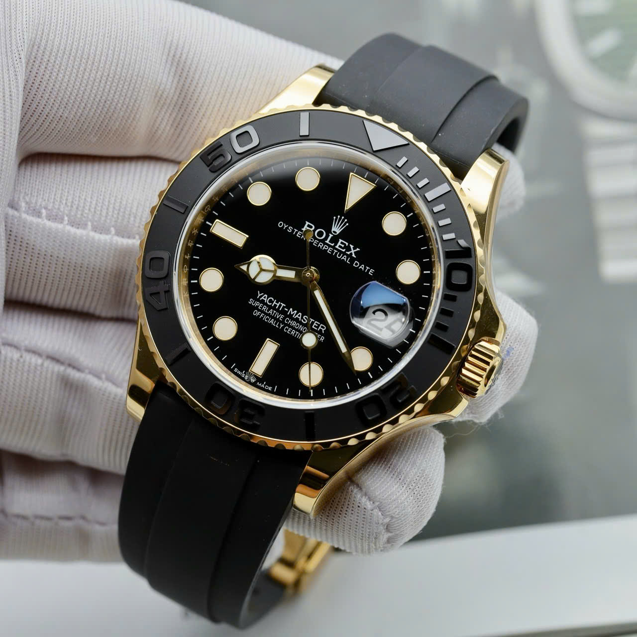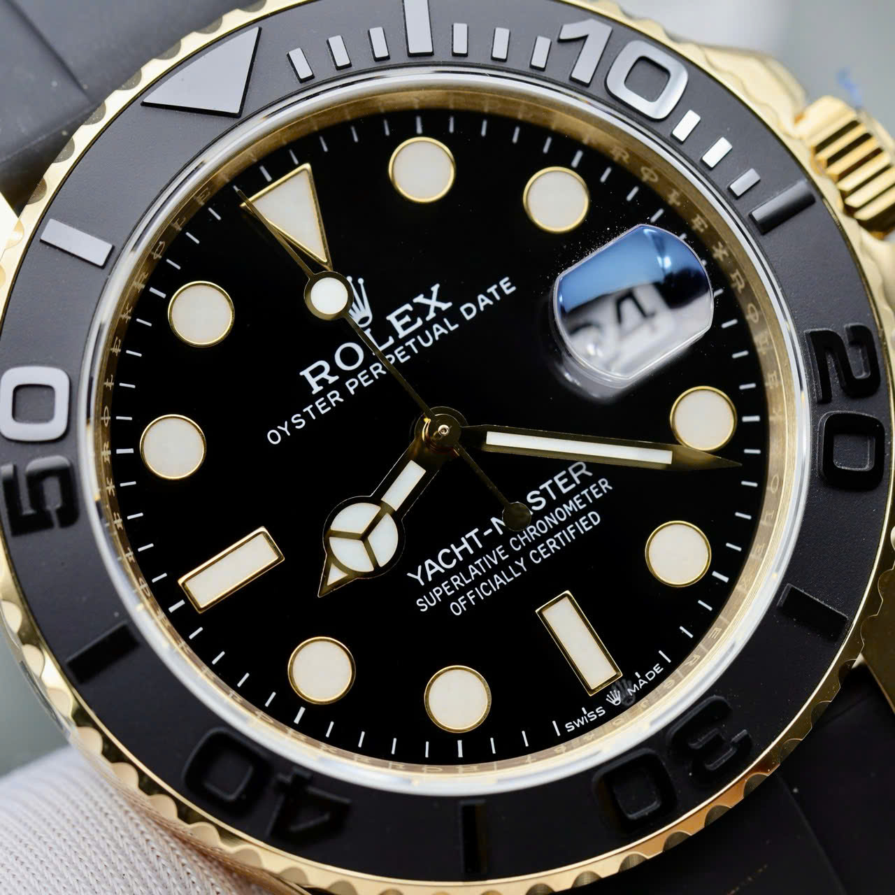 Đồng hồ Rolex Yacht-Master II Fake cao cấp vỏ mạ vàng mặt đen 42mm